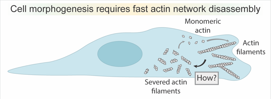 The actin cytoskeleton constitutes a versatile network of filaments that controls the movement and morphogenesis of all eukaryotic cells. To rapidly change cell shape, these actin filament networks need to disassemble within seconds. However, the molecular mechanisms underlying this process had remained elusive for a long time.